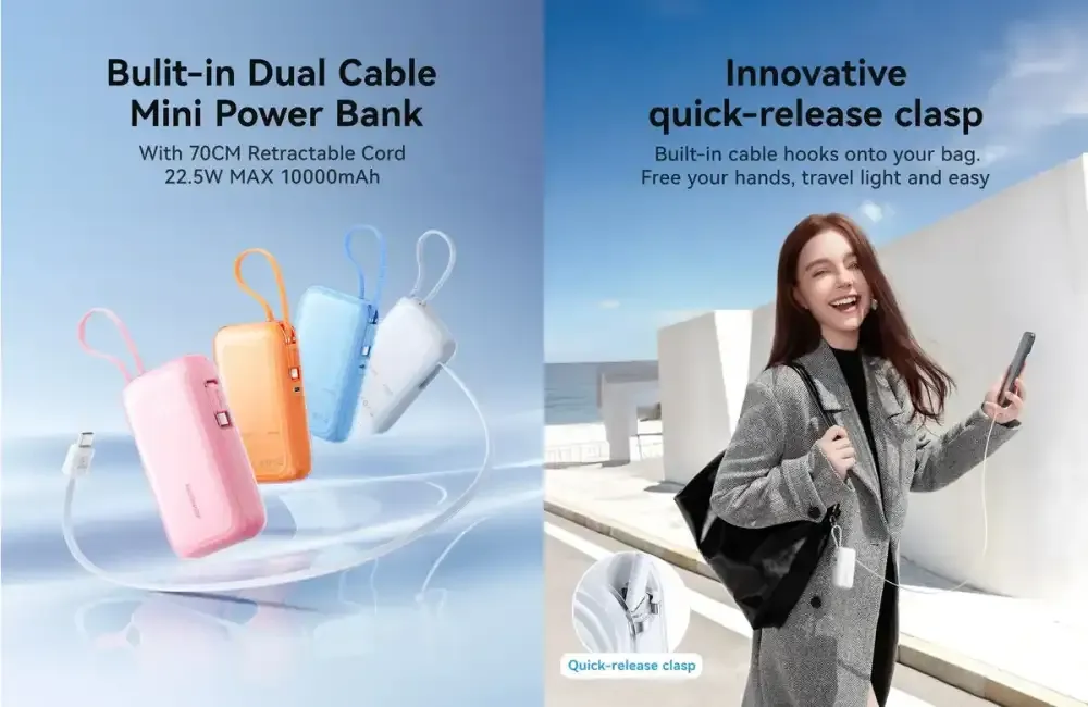 Generous mAh Capacity with Dual Outputs Built with a 10000 mAh rated battery and dual output ports (USB-A and USB-C), this mini power bank provides ample energy to power multiple devices during travel, daily commutes, or extended outings where wall outlets are scarce.