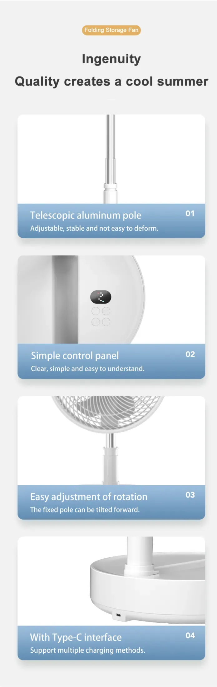Delivers strong and steady airflow ideal for bedrooms, offices, camping, and even outdoor gatherings. The larger size offers greater wind coverage than typical compact fans.