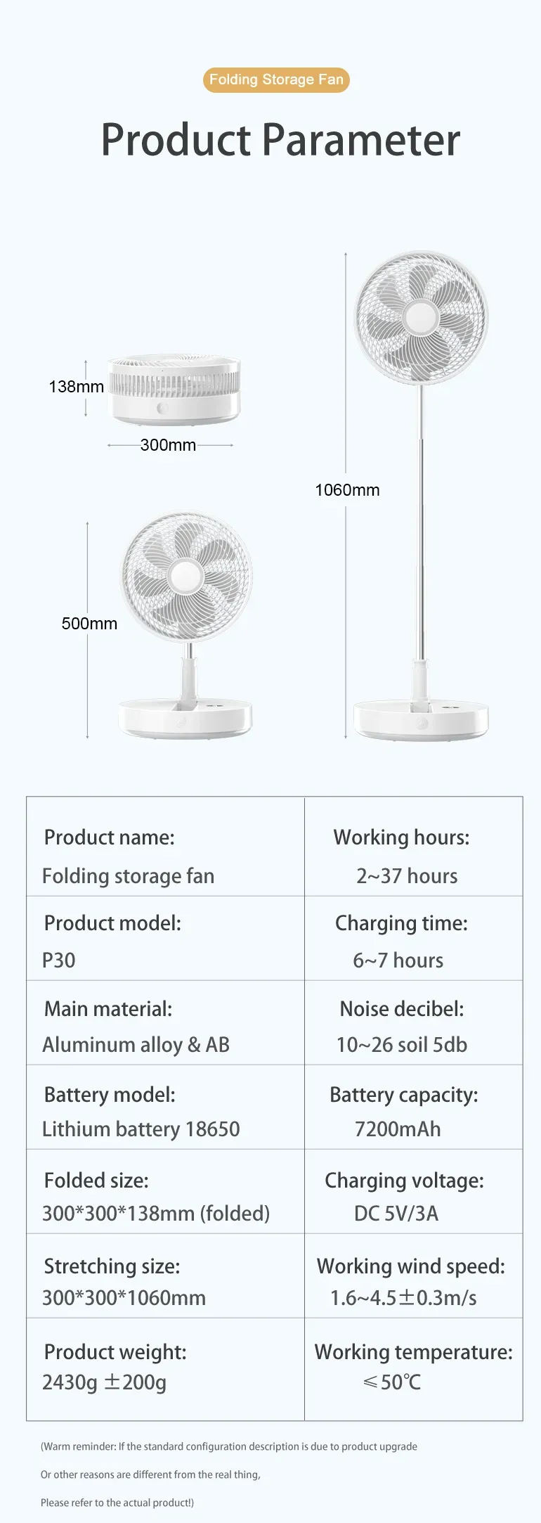 Product Name: P30 Portable Folding Desk Fan